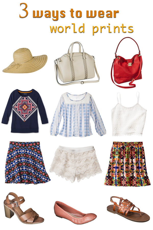 Whether you like a little bit of print or a lot, I've got you covered with three spring looks featuring printed pieces that caught my eye. Be bold by mixing complementary geometric prints with shades of blue in look #1, try out a more feminine look with tiered lace shorts and a pastel peasant blouse in look #2, or go easy-breezy with a cropped tank top and colorful skirt in look #3. Click each item to shop.